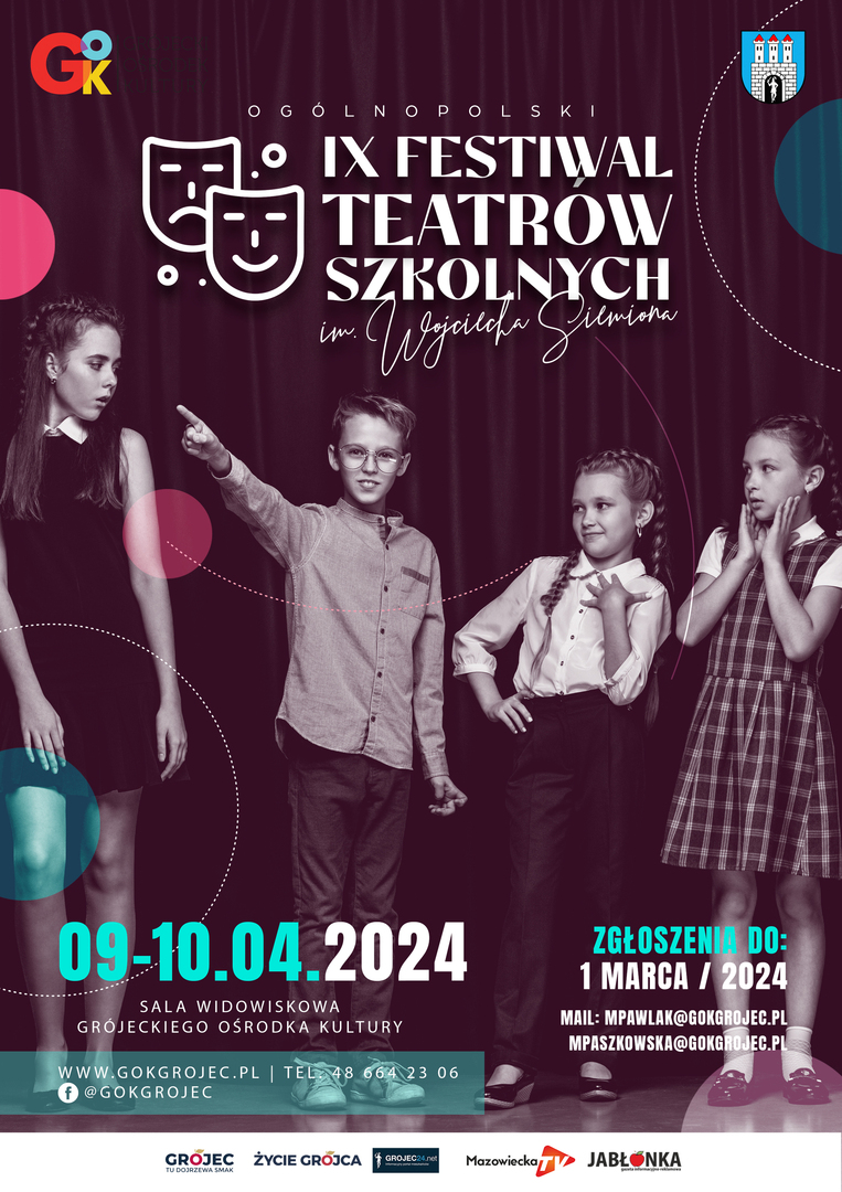 Regulamin i karta zgłoszeniowa w linku: https://gokgrojec.pl/wiadomosci/15525/rusza-nabor-do-ix-edycji-festiwalu-teatrow-szkolnych-w-gok