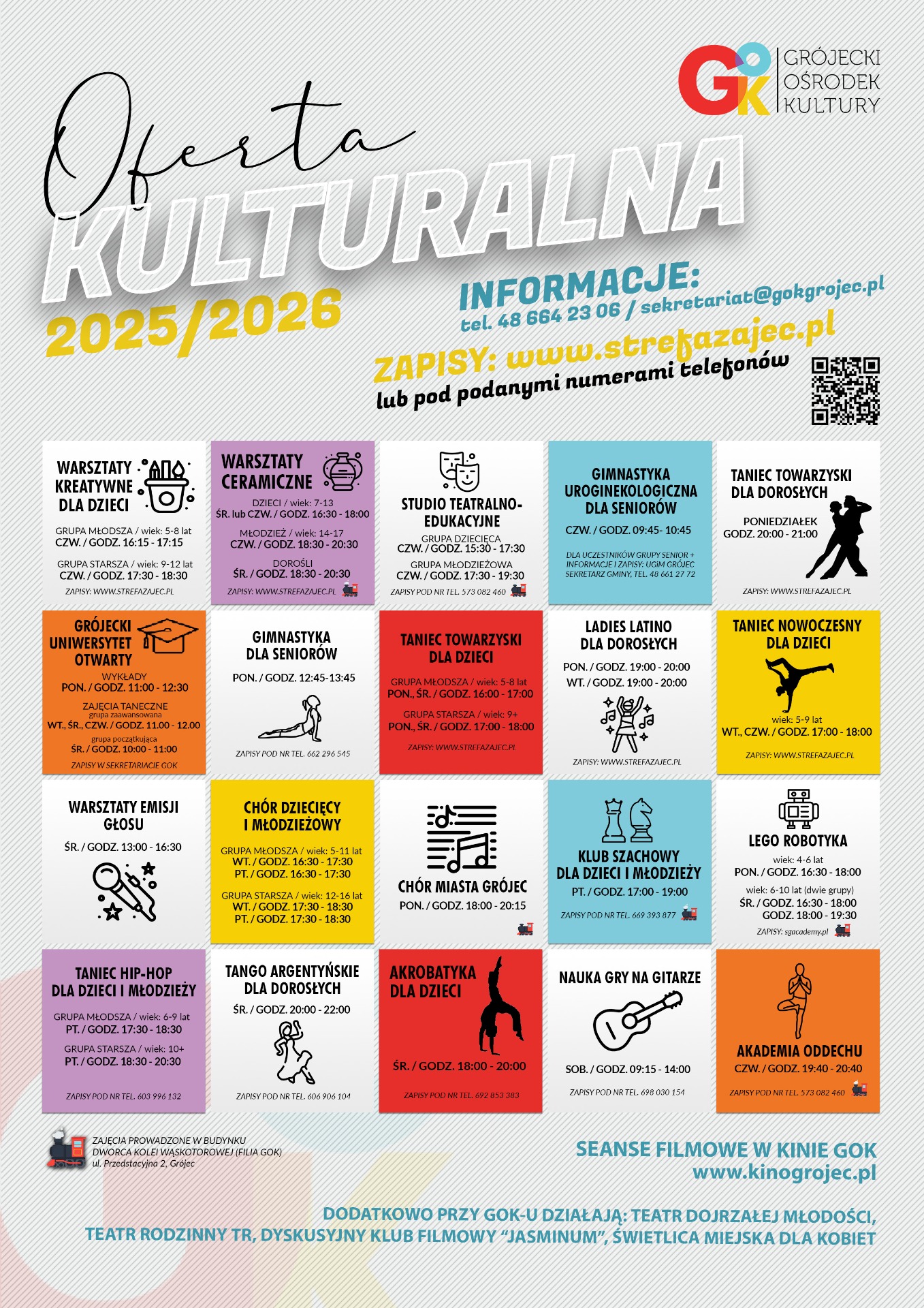 Szczegółowe informacje: tel. : 48-664-23-06 wew.12, sekretariat@gokgrojec.pl.