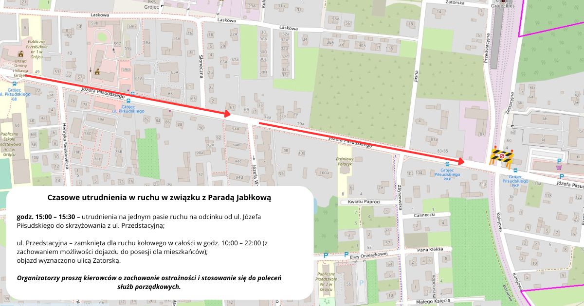 W sobotę, 20 września, w ramach wydarzenia Ale SAD! Festiwal Jabłka w Grójcu, zaplanowano Paradę Jabłkową, która spowoduje chwilowe zmiany w organizacji ruchu: