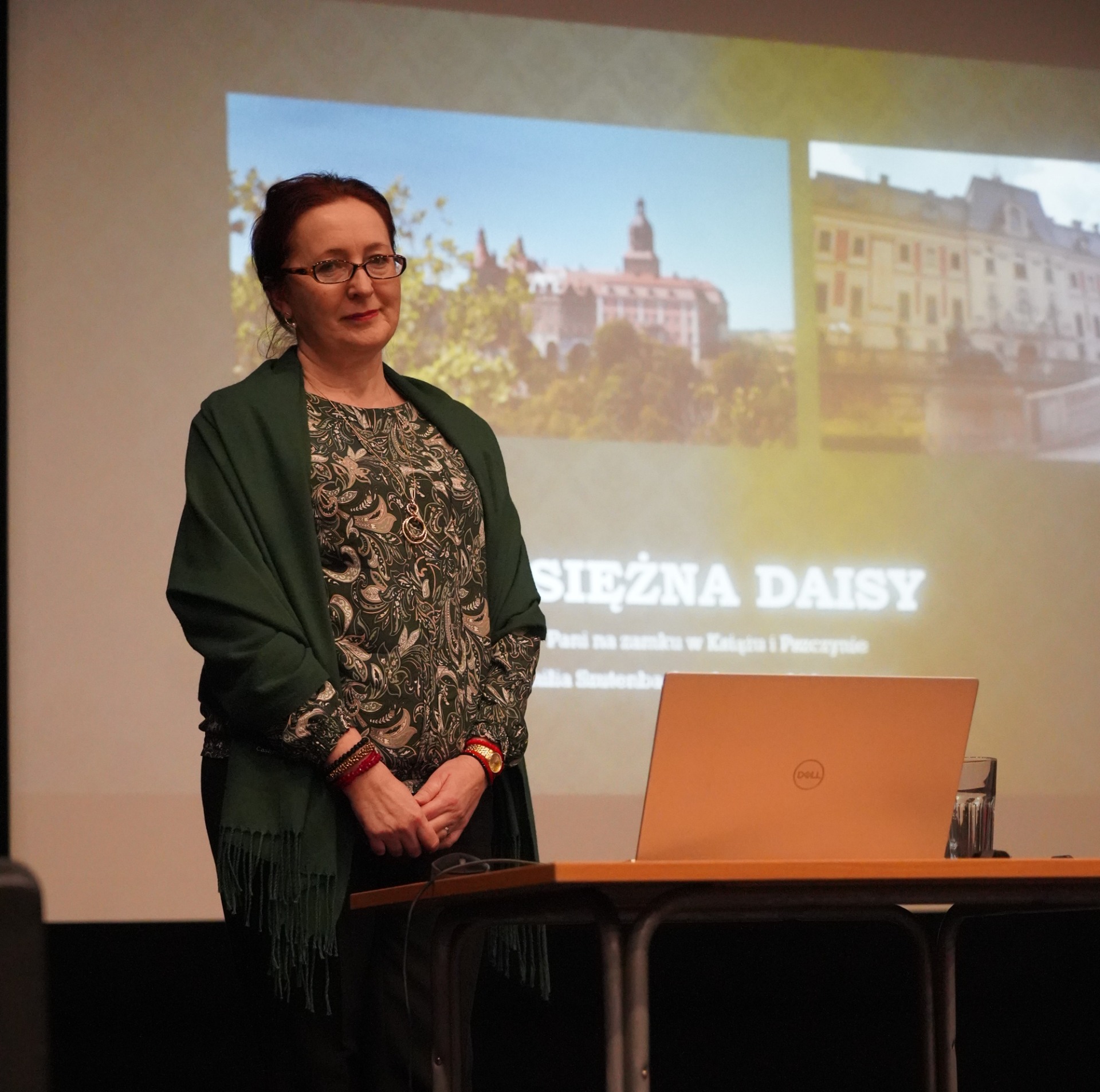 Pani Emilia Szutenbach, której pasą są pałace, zamki i dwory, podczas wykładu "Pałace Śląska: Księżna Daisy – Pani na Zamku w Książu i Pszczynie", w mistrzowski sposób przybliżyła nam tę niezwykłą postać.