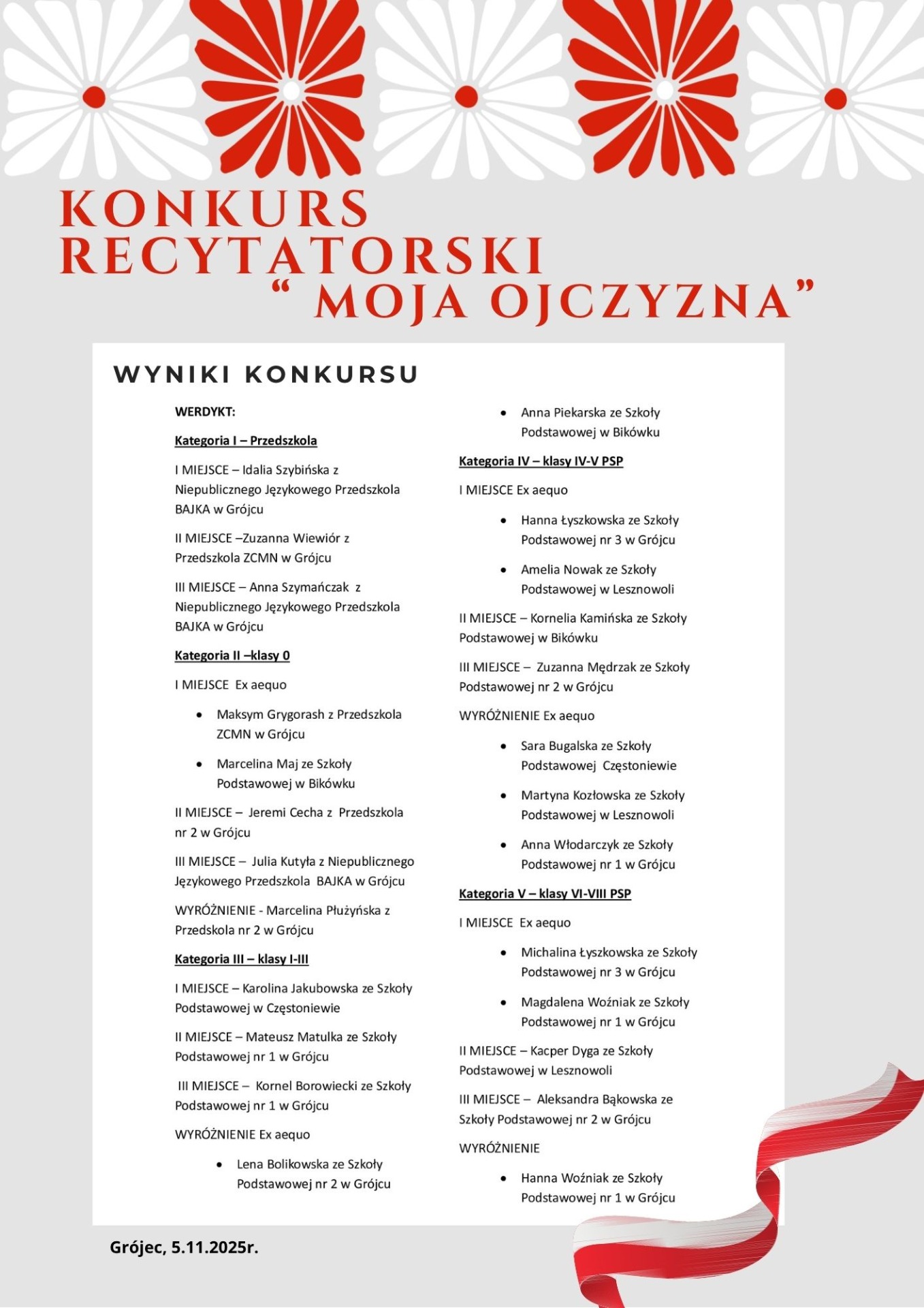 Jubileuszowy XXV Konkurs Recytatorski „Moja Ojczyzna” Rozstrzygnięty!