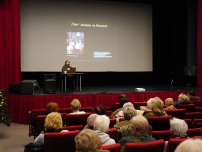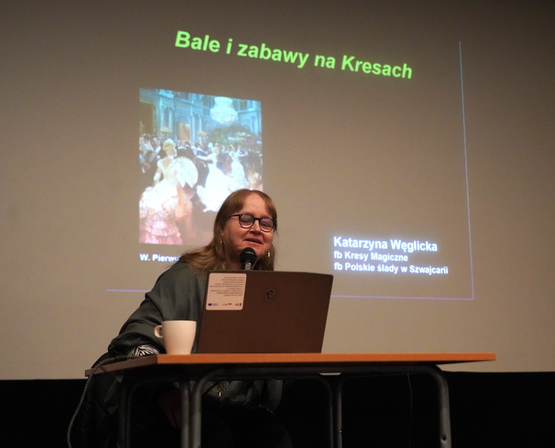 Wykładem dniu 12.01.2026 r. zakończyliśmy semestr zimowy w Grójeckim Uniwersytecie Otwartym. Dzisiejsze spotkanie pozwoliło nam podejrzeć kulisy dawnego życia towarzyskiego. A to wszystko dzięki prelekcji Katarzyny Węglickiej pt. „Bale i zabawy na Kresach”. Nasza prelegentka, jako historyk sztuki i znawczyni tematyki kresowej, w barwny sposób opisała zimowe tradycje, które na kilka tygodni całkowicie zmieniały rytm życia dworów i miast. Karnawał był czasem wielkich migracji ziemiaństwa, które opuszczało wiejskie zacisza, by w miejskich pałacach i salonach prezentować dorastające córki „lepszym sferom”. Panny z przejęciem szykowały suknie i karnety balowe, wiedząc, że każda zabawa w pałacu czy wiejskiej karczmie to idealna szansa na zaprezentowanie się w towarzystwie i znalezienie odpowiedniego kandydata na męża. Usłyszeliśmy mnóstwo anegdot o męskich fortelach oraz specyficznych zwyczajach, które sprawiały, że kresowe zabawy miały swój niepowtarzalny i często zabawny charakter.