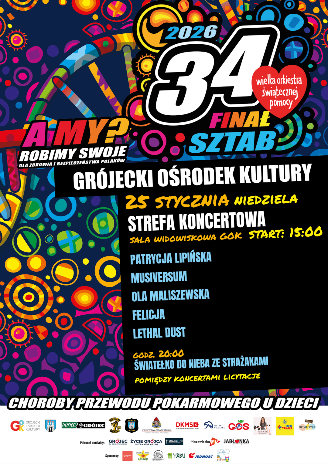Grójec znów łączy siły! Już 25 stycznia (niedziela) spotykamy się w Grójeckim Ośrodku Kultury, aby wspólnie wesprzeć 34. Finał Wielkiej Orkiestry Świątecznej Pomocy. W tym roku zbieramy środki na walkę z chorobami przewodu pokarmowego u dzieci.