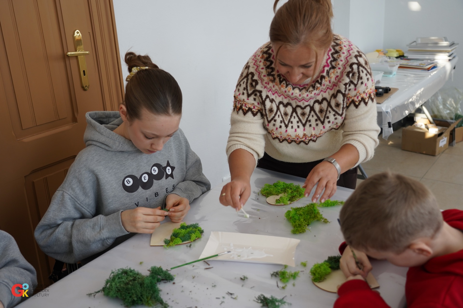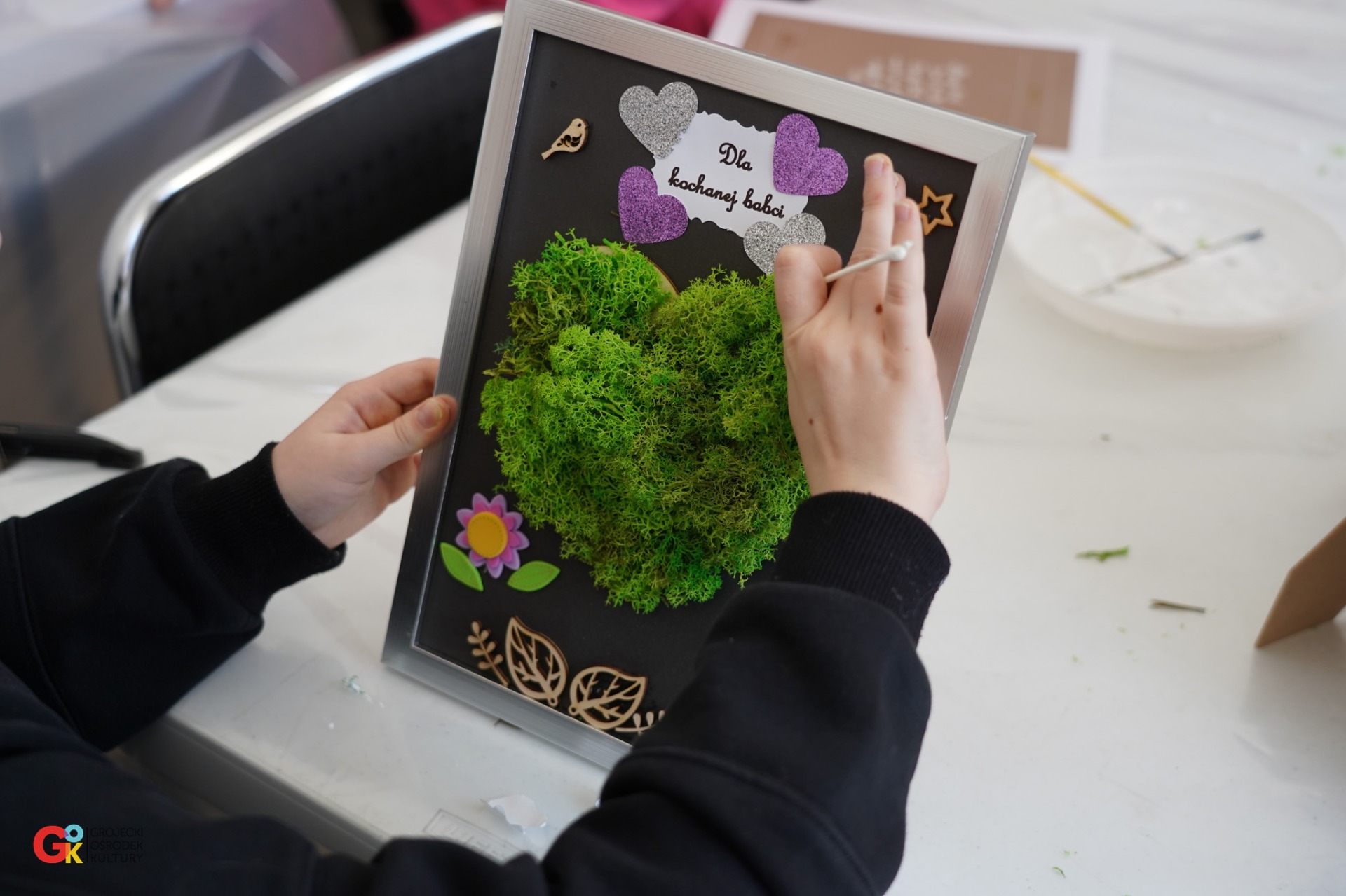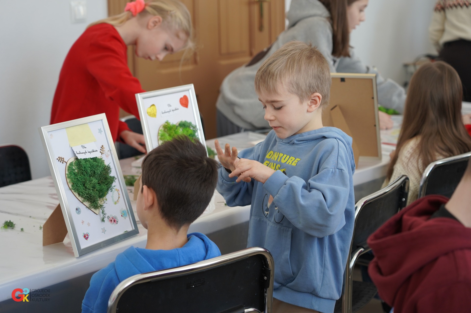 Wczorajszego przedpołudnia w Grójeckiej Stacji Kultury działy się rzeczy magiczne! Podczas naszych feryjnych warsztatów mali artyści przygotowali wyjątkowe prezenty z okazji Dnia Babci i Dnia Dziadka. łównym bohaterem był zielony chrobotek, z którego dzieci wyczarowały soczyste, miękkie serca zamknięte w drewnianych ramkach. To nie tylko piękna ozdoba, ale przede wszystkim prezent prosto z serca, który zostanie na długo Dziękujemy wszystkim dzieciaczkom za ogromne zaangażowanie i kreatywność. Mamy nadzieję, że dziadkowie będą zachwyceni!